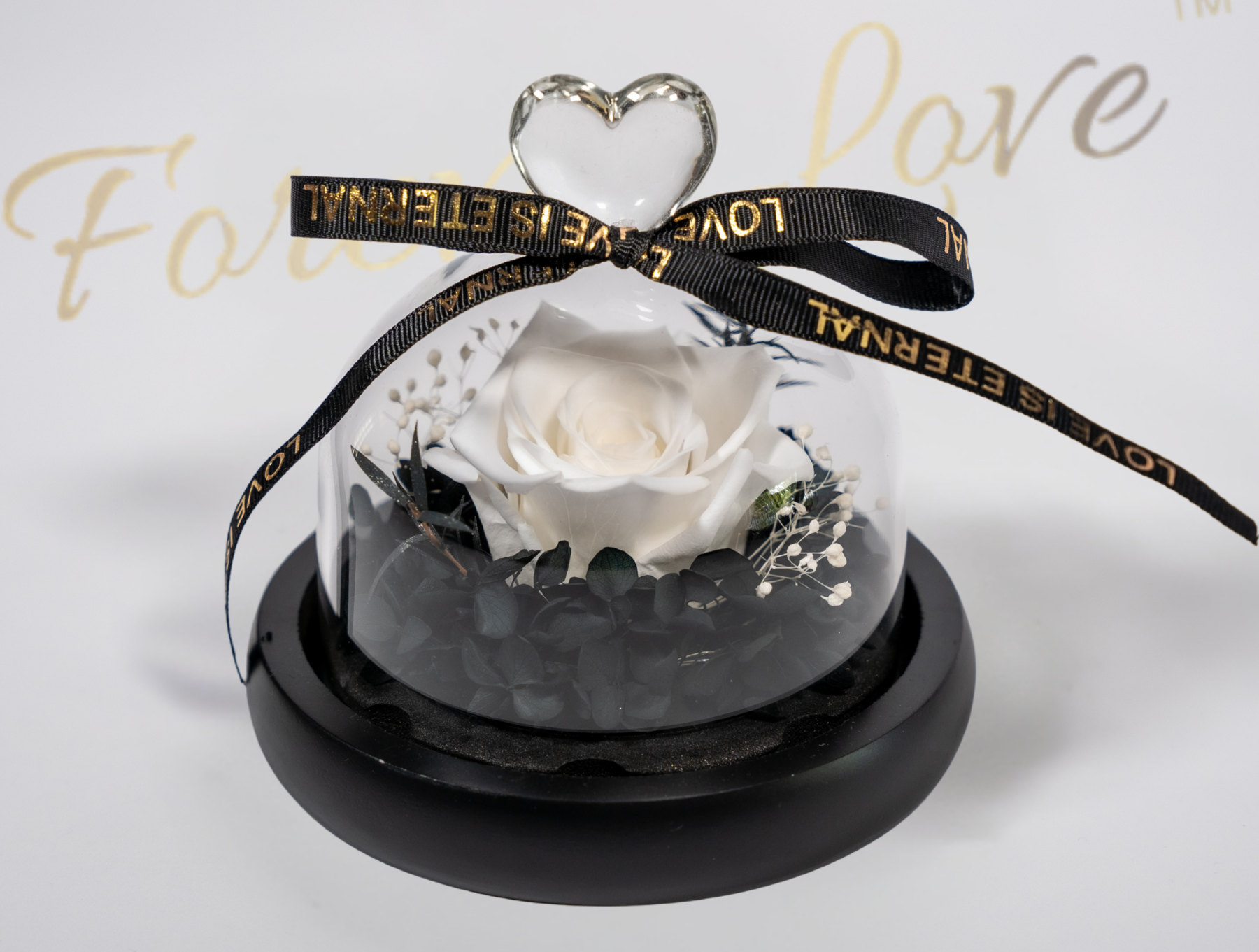 Forever Real Rose in Glass Dome - white