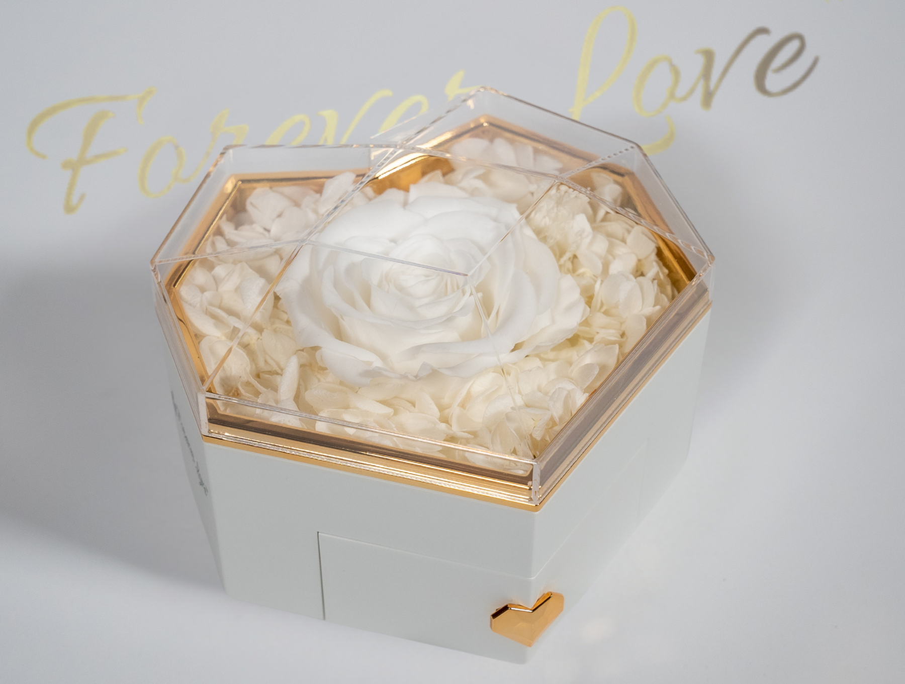 Real Preserved Rose in Heart-Shaped Box - white